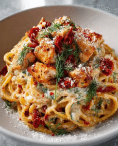 π Creamy Chicken and Sun-Dried Tomato Spaghetti with Dill