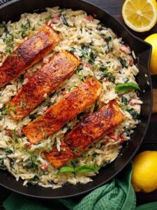 🐟 Creamy Parmesan Salmon & Spinach Orzo