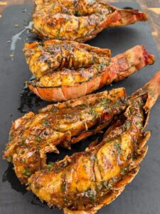 Grill or broil lobster tails for 10–12 minutes (until opaque and slightly charred), brushing with more sauce halfway through.