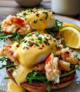 Toast English muffins until golden and place a small handful of arugula on each half (optional). Add warm lobster meat right on top for a next-level brunch stack that screams seafood elegance.