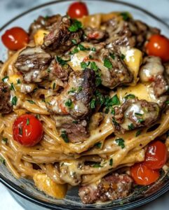 This is weeknight luxury done right—juicy steak bites seared until golden, tossed with silky spaghetti, and coated in a creamy cherry tomato sauce that’s rich, slightly sweet, and downright irresistible. It’s cozy, elegant, and packed with flavor in every twirl. 💛✨