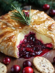 Golden Puff Pastry Brie with Cranberry-Raspberry Lava Core