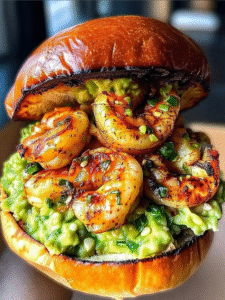 🍤🍔 Homemade Shrimp Burger with Guacamole