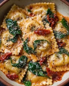 Rich and Flavorful Ravioli with Spinach and Sun-Dried Tomato Sauce