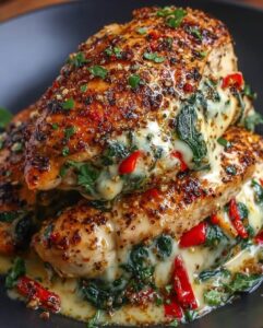 🍗 Roasted Red Pepper, Spinach & Mozzarella Stuffed Chicken