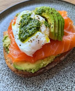 This toast is clean, classy, and straight-up brunch goals. Creamy avocado, silky smoked salmon, a perfectly poached egg, and herbaceous pesto all stacked on crispy toastโsimple ingredients, luxury vibes. Light but filling, fresh but indulgentโฆ yeah, this one eats ๐ฎโ๐ฅ